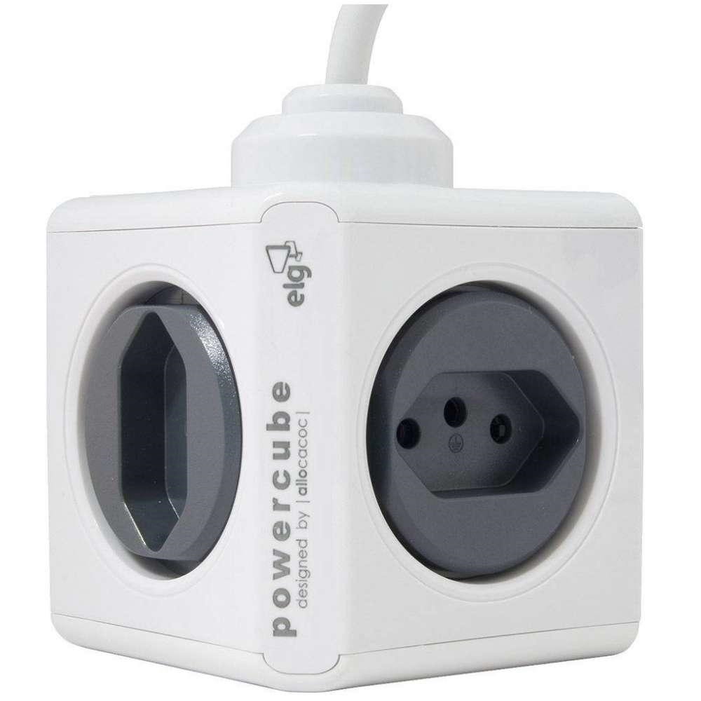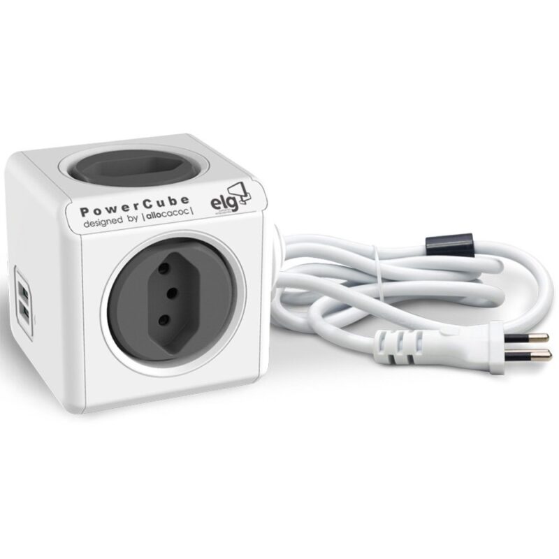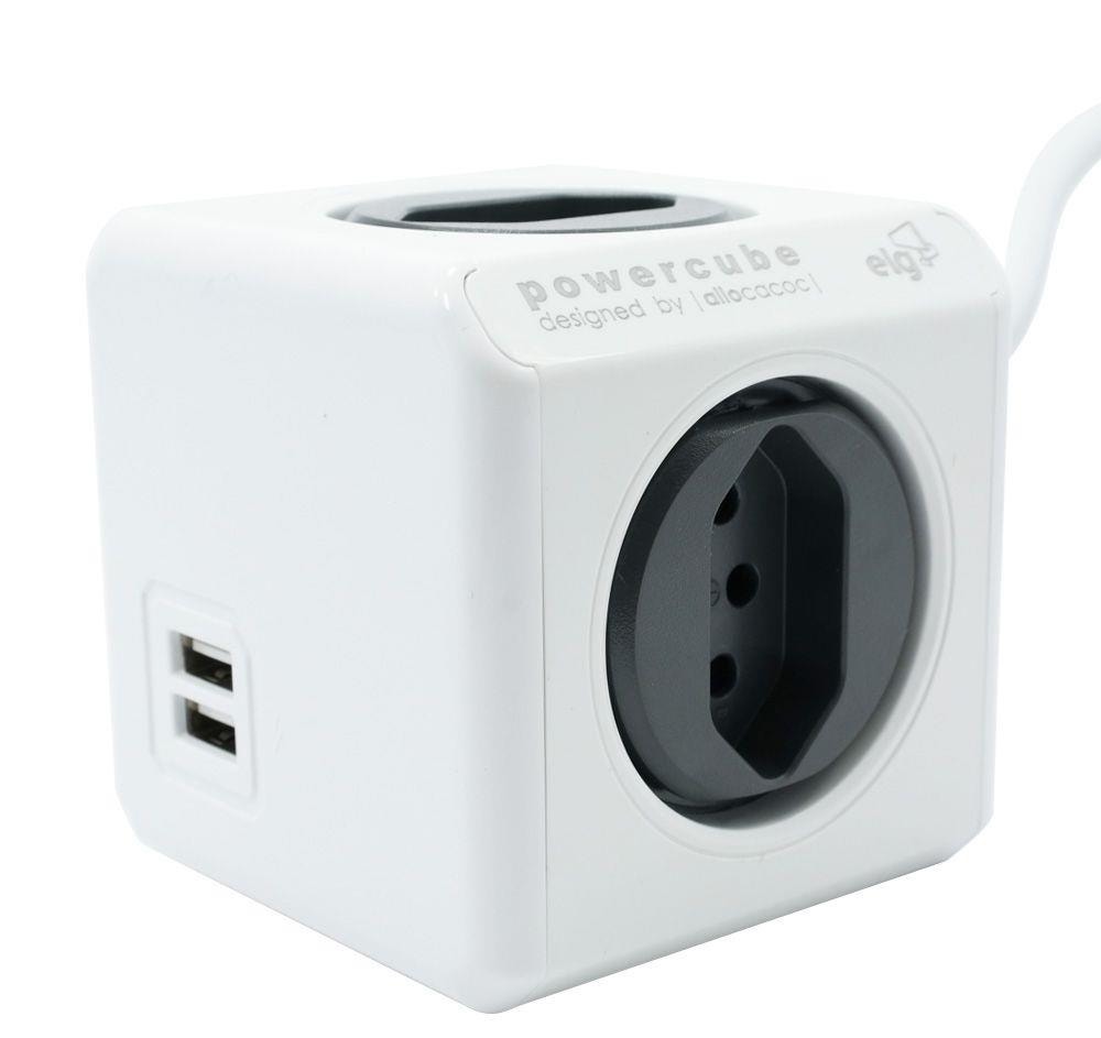 Fullbai / Papelería y Oficina / Accesorios de computación / Cables y adaptadores / Adaptador de tomada múltiplo ELG Allocacoc PWC-X4U 4x Tomadas 2x USB Cabo 1.5m – Gris