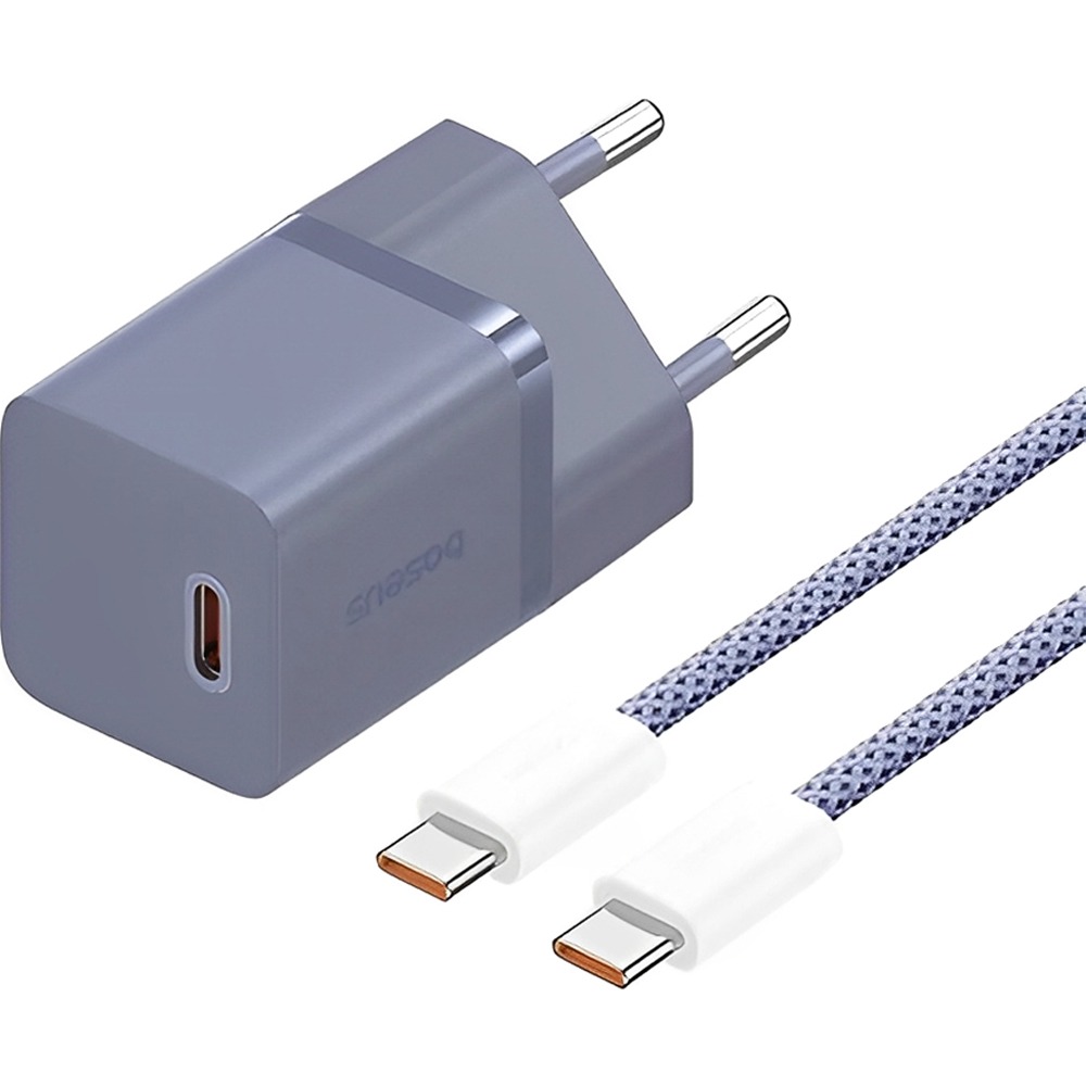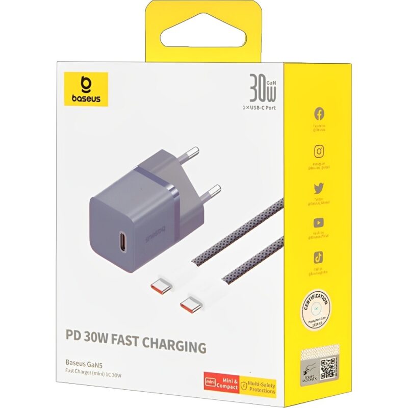 Fullbai / Tecnología / Celulares / Accesorios Celulares / Cargadores y cables / Cargador de pared / Cargador de Pared Baseus Mini 1C GAN5 30 W USB-C + Cable USB-C – Morado (P10110902523-00)