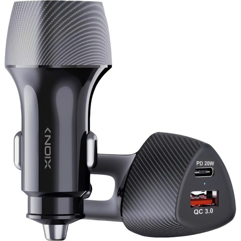 Fullbai / Tecnología / Celulares / Accesorios Celulares / Cargadores y cables / Cargadores rápidos / Cargador para Auto Xion XI-CGCAR 20 W USB-A/USB-C – Negro