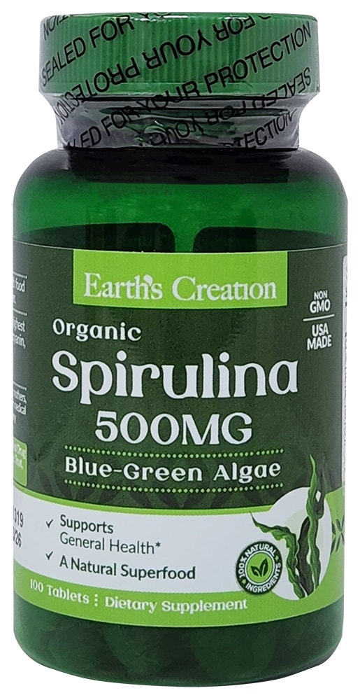 Fullbai / Belleza y Salud / Salud y Bienestar / Vitaminas y suplementos / Earth’s Creation Spirulina 500 MG Blue Green Algae (100 Tabletas)