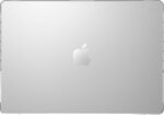 Una carcasa dura duradera para MacBook que protege contra rasguños, pinchazos y abolladuras. Con clips seguros y pies de goma para evitar resbalones.