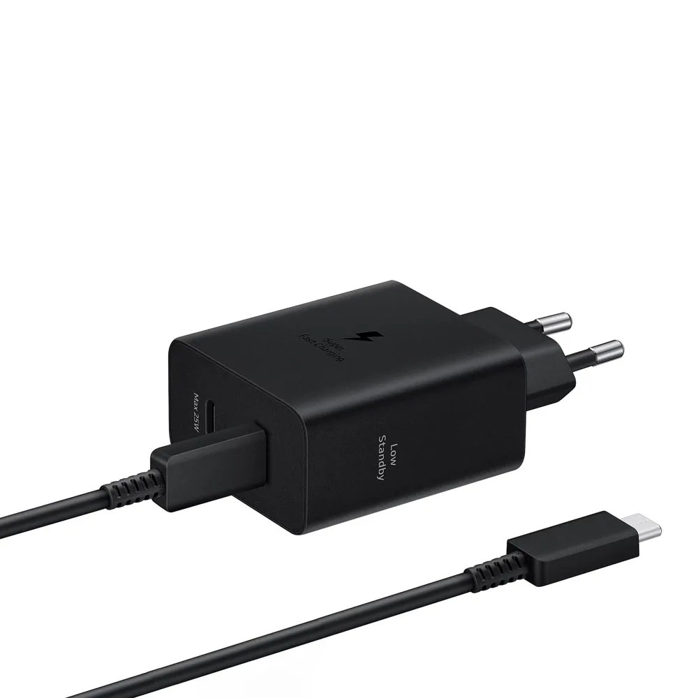 Fullbai / Tecnología / Celulares / Accesorios Celulares / Cargadores y cables / Cargadores rápidos / Fuente Cargador Samsung Power Adapter Duo EP-T5020XBEGWW – 50W – 2x USB-C – Con Cable USB-C – Bivolt – Negro