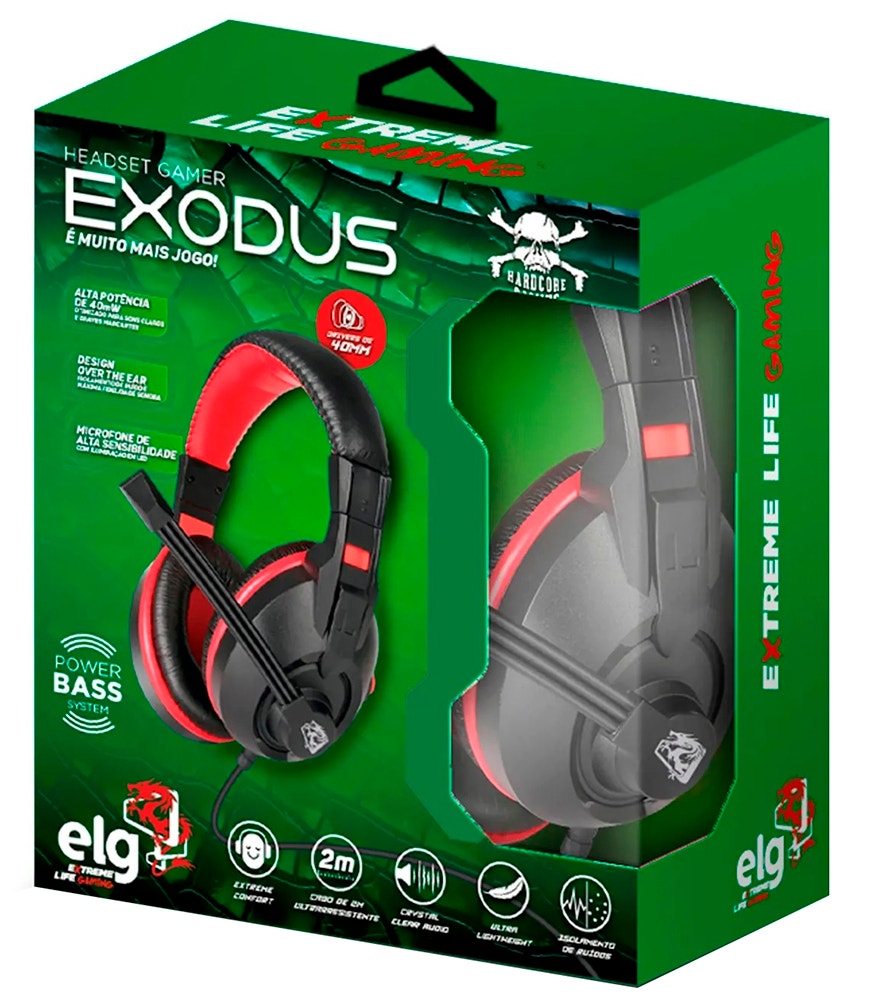 Fullbai / Tecnología / Headset Gamer ELG Exodus HGEX con Micrófono P2xP2 40mW (2 metros) Negro/Rojo