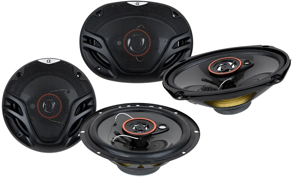 Todos los altavoces están equipados con orificios de montaje universales para una fácil instalación en casi cualquier vehículo. Los conos de los altavoces de polipropileno y los tweeters de polieterimida están diseñados para soportar volúmenes altos y mantener un sonido nítido y claro sin distorsión. Todos los altavoces vienen con una nueva araña mejorada y un imán de ferrita, así como rejillas incluidas para cada altavoz.