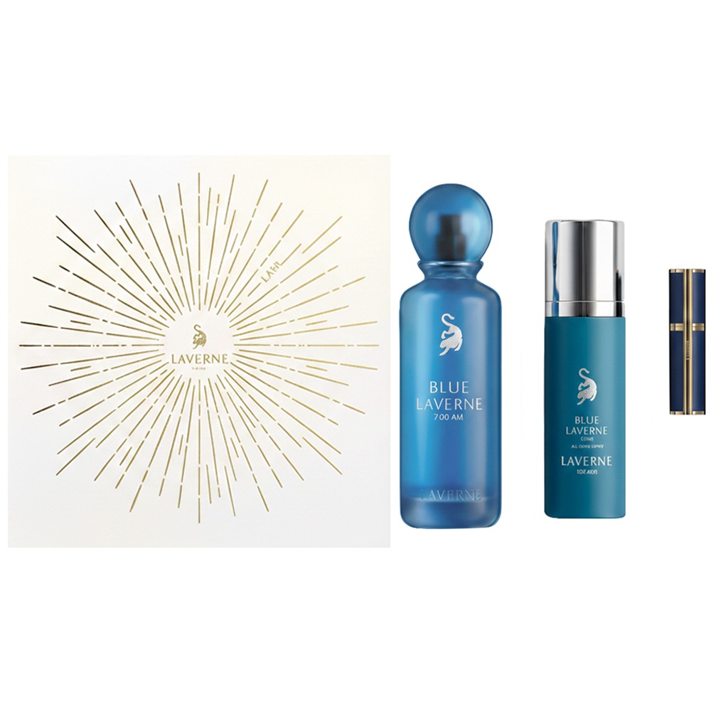 Fullbai / Belleza y Salud / Perfumería / Kit Perfume Laverne Blue Laverne 7:00 AM EDP – Masculino 3 piezas