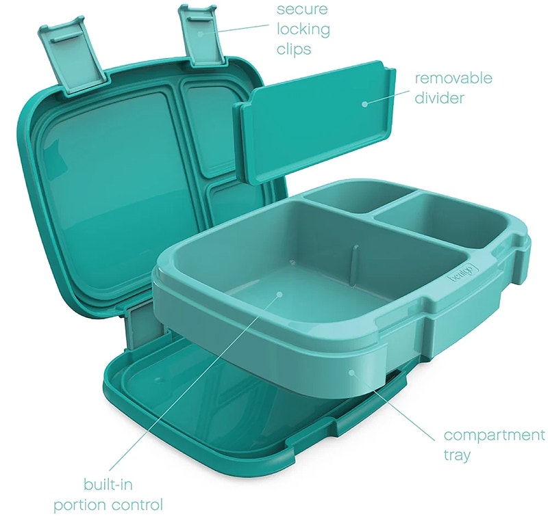 Los recipientes Bentgo Fresh para loncheras también son ideales para recalentar las sobras de comida de forma segura en el microondas hasta por 3 minutos. La cubierta exterior con cierres de seguridad conserva la frescura y evita que los alimentos se muevan durante el transporte.