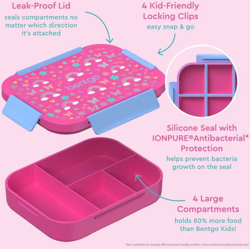 Ideal para porciones más grandes: con capacidad para 4,2 tazas (80% más que las Bentgo Kids clásicas), permite incluir un plato principal o sándwich completo, más frutas, verduras, cereales o snacks.