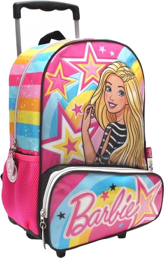 Fullbai / Papelería y Oficina / Útiles escolares / Mochilas y cartucheras / Mochilas escolares para niños / Mochila Escolar con Ruedas Barbie – 71603 (Rosa)