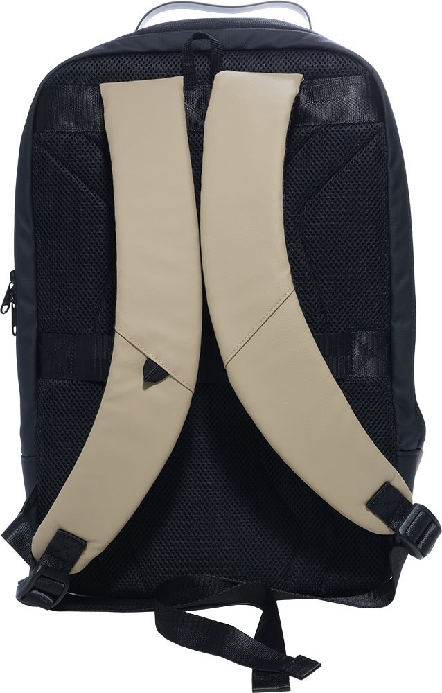 Sistema luggage pass-through, una correa horizontal trasera que ayuda a estabilizar la mochila sobre la maleta durante el desplazamiento. Respaldo acolchado con malla transpirable, diseñado con un tejido perforado que mejora la ventilación y proporciona mayor comodidad durante el uso prolongado
