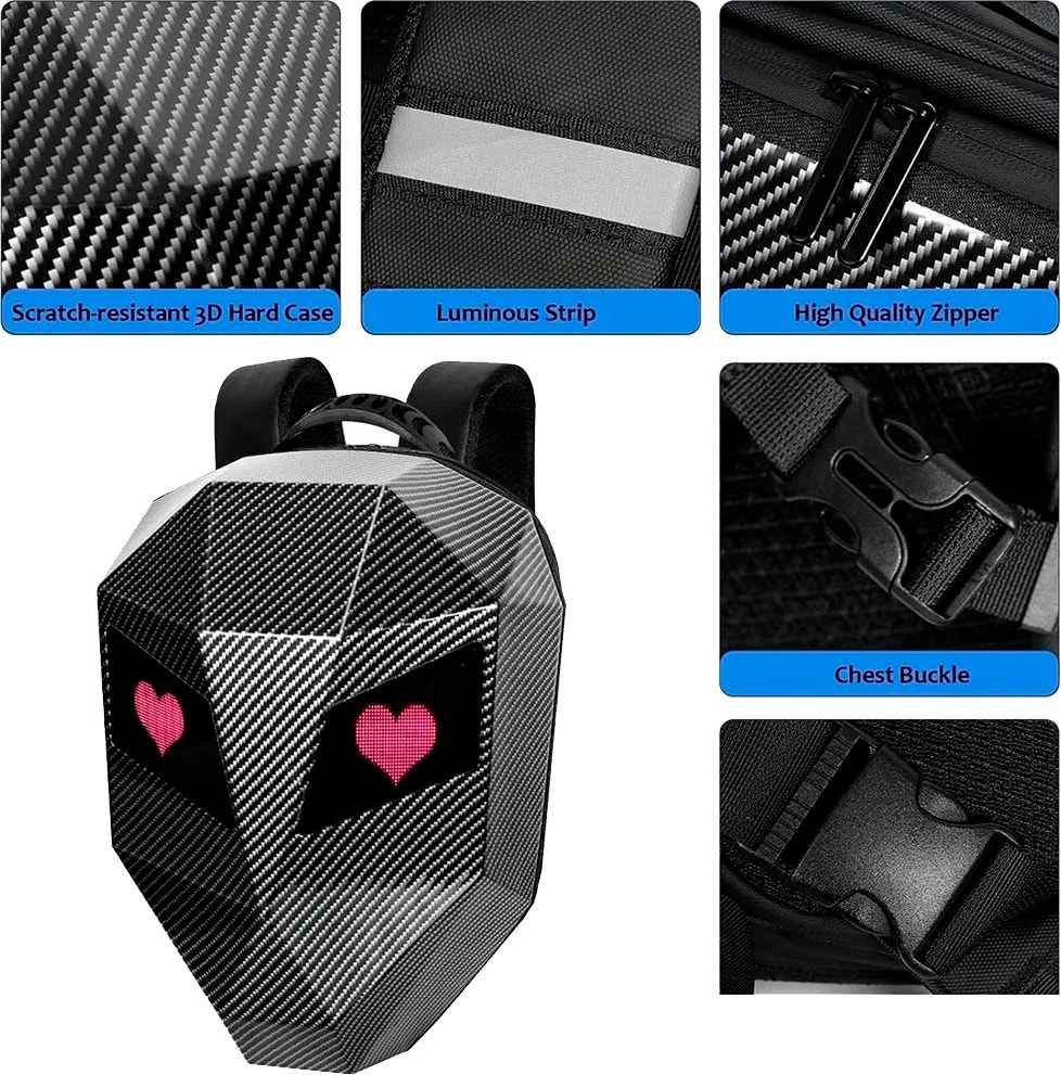 Pantalla LED interactiva Personaliza tu estilo con mensajes, dibujos o animaciones directamente desde la pantalla LED integrada.