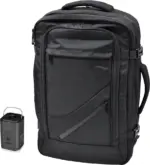 Possui bolsos com zíper nas almofadas lombares para acesso rápido e um compartimento exclusivo para laptop, além de múltiplos bolsos internos que facilitam a organização dos seus objetos pessoais.
