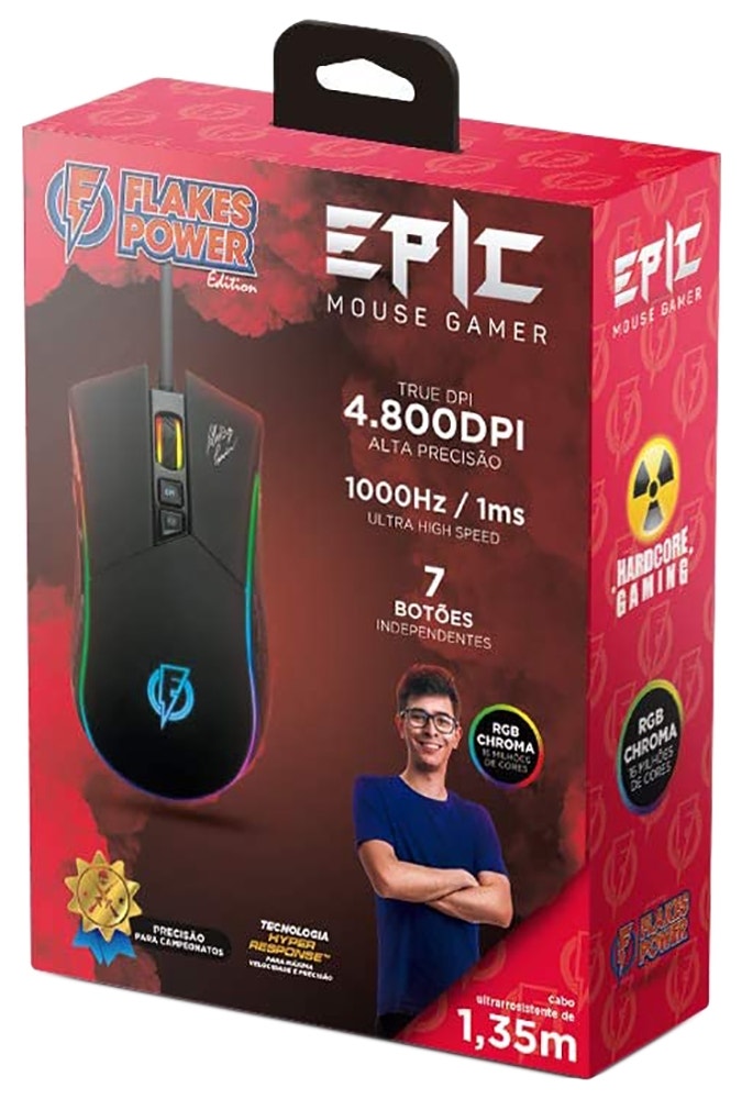 Fullbai / Tecnología / Mouse Gamer ELG Flakes Power FLKM001 EPIC RGB 7 botones 4800dpi – Negro