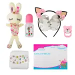 | INCLUYE | Sandalias – Peluche – Vincha de gato – Mamadera – Chupete – Pañal |