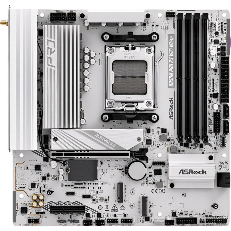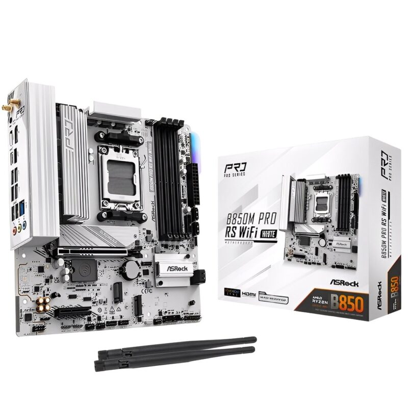 Fullbai / Tecnología / Accesorios computación / Placa Madre ASRock B850M Pro RS Wifi AM5 DDR5 mATX – Blanco