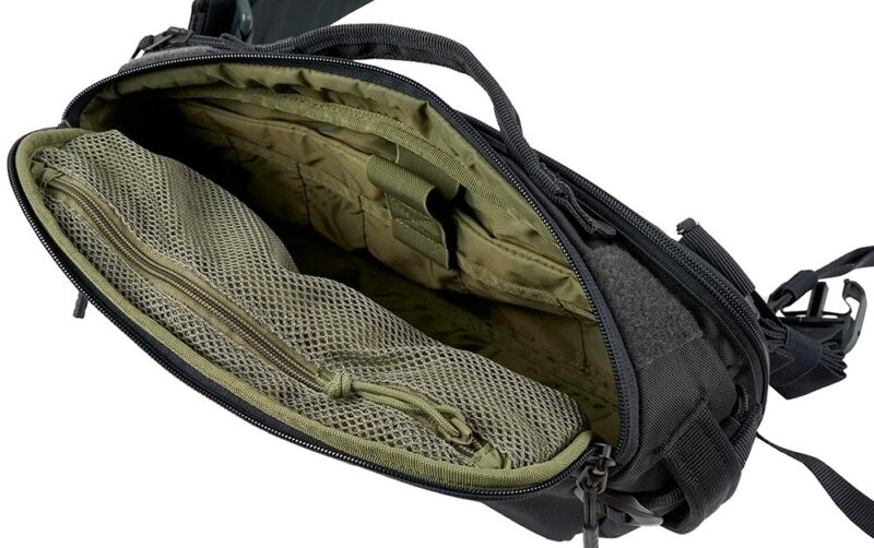 * Organizador interno de administración y bolsillos; Manga acolchada con cierre de correa; Molle cortado con láser con cara de bucle