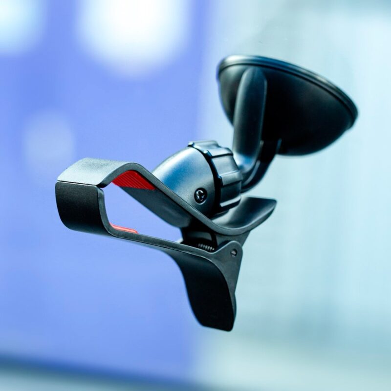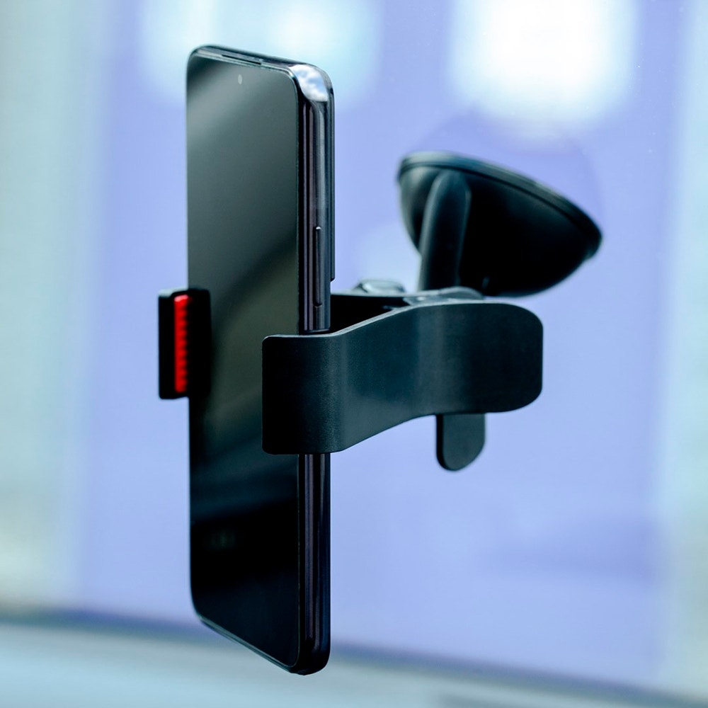 Con su base fija, el soporte vehicular Krab KB400 se adhiere de manera segura al parabrisas o al salpicadero de tu coche. Gracias a su ventosa de alta calidad, garantiza una sujeción firme y estable en todo momento. Además, su mecanismo de bloqueo y desbloqueo facilita la colocación y retirada del soporte de manera sencilla y rápida.