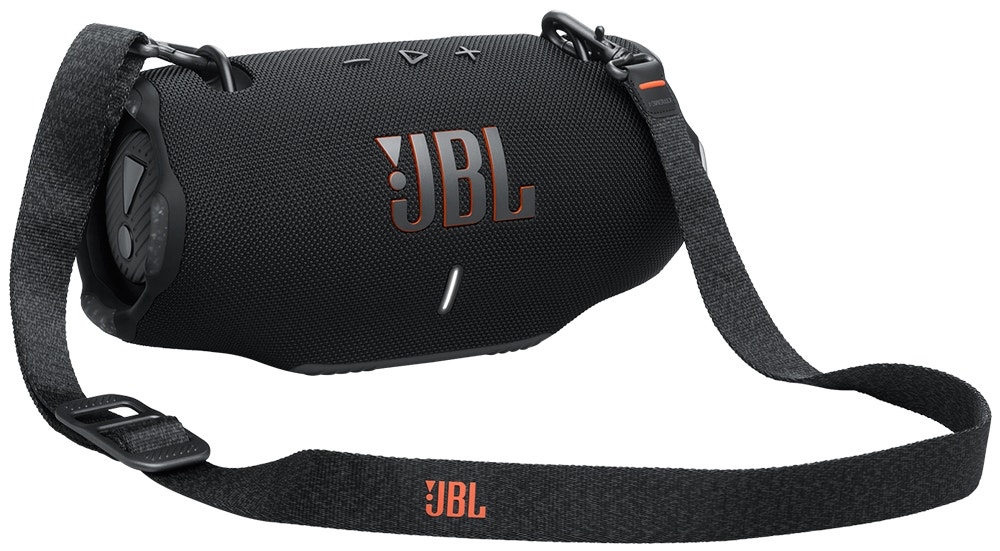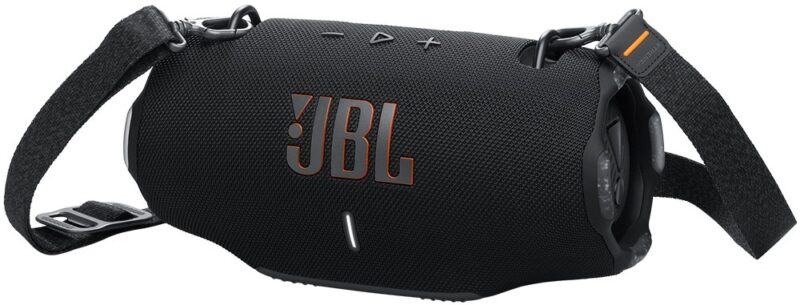 Con su diseño cómodo y elegante, el speaker JBL Xtreme 4 es el compañero ideal para llevar la música a todas partes. Su correa para el hombro te permite transportarlo con facilidad, ya sea colgado o como bandolera.