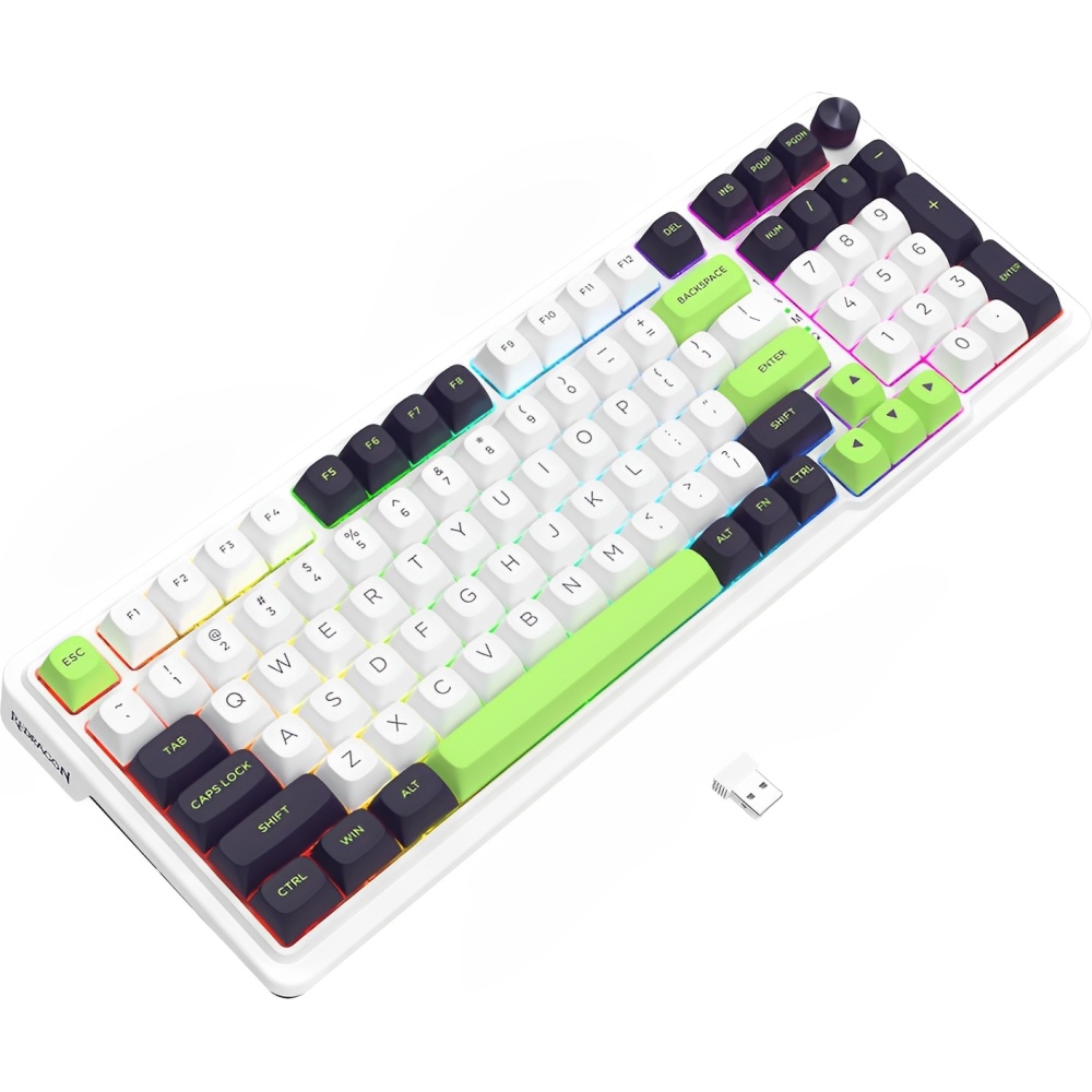 Fullbai / Tecnología / Gaming / Teclados Gaming / Teclado Gamer Mecánico Redragon Eisa Max K686WBG-RGB-MAX 96% RGB Inalámbrico Switch Mint Mambo – Blanco/Negro/Verde (Inglés)