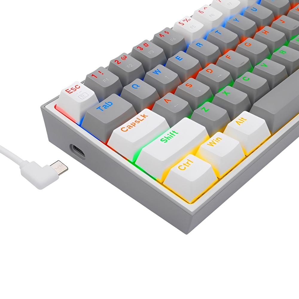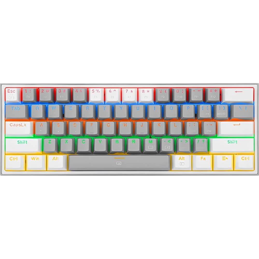 Fullbai / Tecnología / Gaming / Teclados Gaming / Teclado Gamer Mecánico Redragon Frizz Rainbow K617-R 60% RGB USB-C Switch Blue – White /Gray (Inglés)