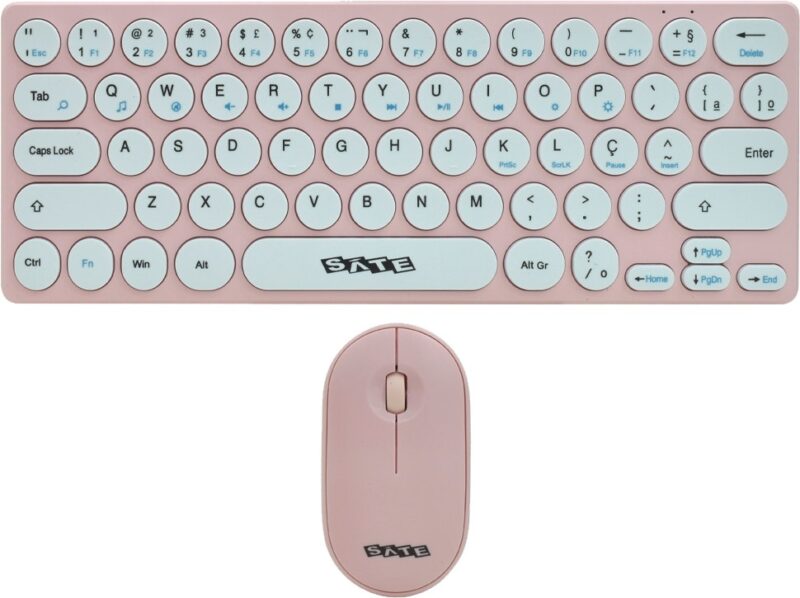 Fullbai / Tecnología / Accesorios computación / Teclados / Teclado y Mouse Inalámbrico Satellite AK-6031G Rosa (Portugués)