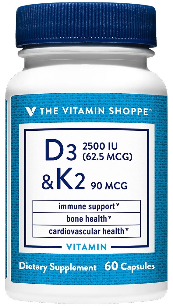 Fullbai / Belleza y Salud / Salud y Bienestar / Vitaminas y suplementos / The Vitamin Shoppe D3 2500IU & K2 90 MCG (60 Cápsulas)