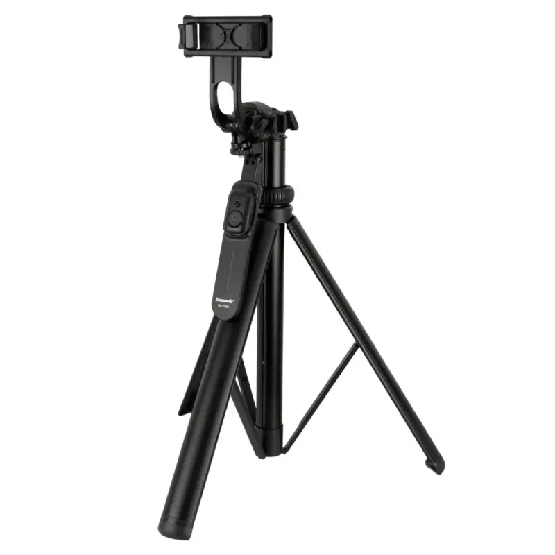 Un trípode multifuncional diseñado para creadores de contenido, viajeros y aficionados a la fotografía. Su diseño extensible (hasta 2 metros) y su base estable permiten usarlo como palo selfie o trípode, ideal para fotos, vídeos, vlogs y videollamadas. Incluye un control remoto Bluetooth.
