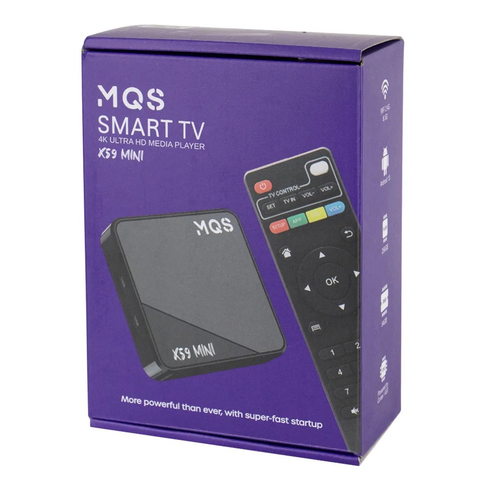 Fullbai / Tecnología / TV & Audio / Audio y sonido / Streaming y multimedia / Dispositivos de streaming / TV Box MQS X59 Mini – 4K – 64/256GB – Wi-Fi – Android 13 – FTA